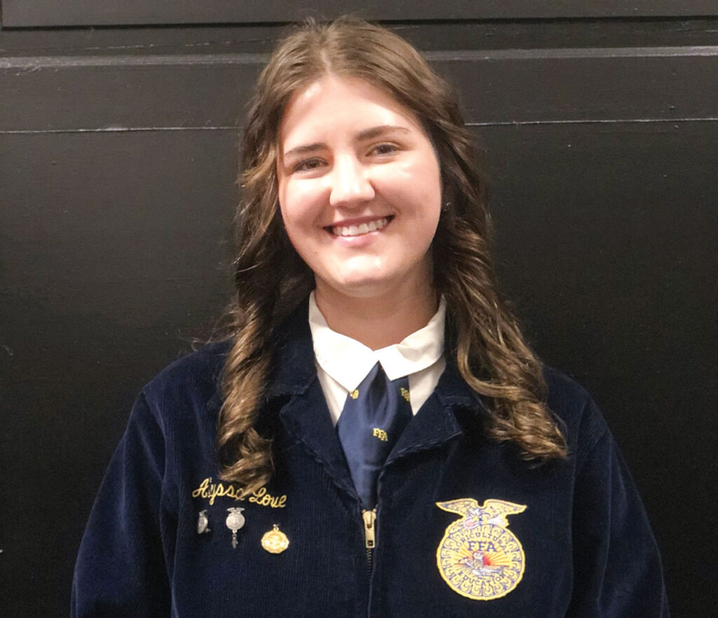 “I love being a part of FFA because of all the opportunities it brings and the new friends and memories you can make. I also love living on a farm out in the country because of how quiet and beautiful as it can be.”