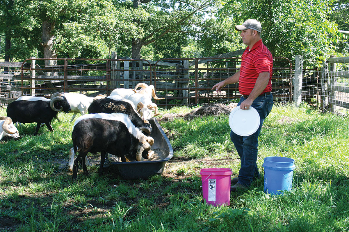 “God meant animals to eat forages, not grain,” Brad said. “I don’t feed a tremendous amount of gain, but I feed some. That also gives me the opportunity to administer dewormers because they are wild and are not easy to handle, which is why we have 8-foot fences. If we can work parasite control into the feed, that helps. Feeding a high-quality forage year-round will help keep some of the typical sheep problems away. Sheep have feet problems, and I had several problems with that until I figured out that high-quality forage is key. Sheep are doing to have parasites, that’s just the way it is, but if you can keep their system healthy, a healthy immune system will fight things off. I do the same thing with my cows. They might be grazing fescue, but I try to add clover in the pastures and graze them on Sudan in the summer. I feed them silage and high-quality hay, then they don’t need as much mineral because they are getting what they need in forages. The sheep are the same way in that they get what they need naturally, then their system digests it better and their system is healthier.”