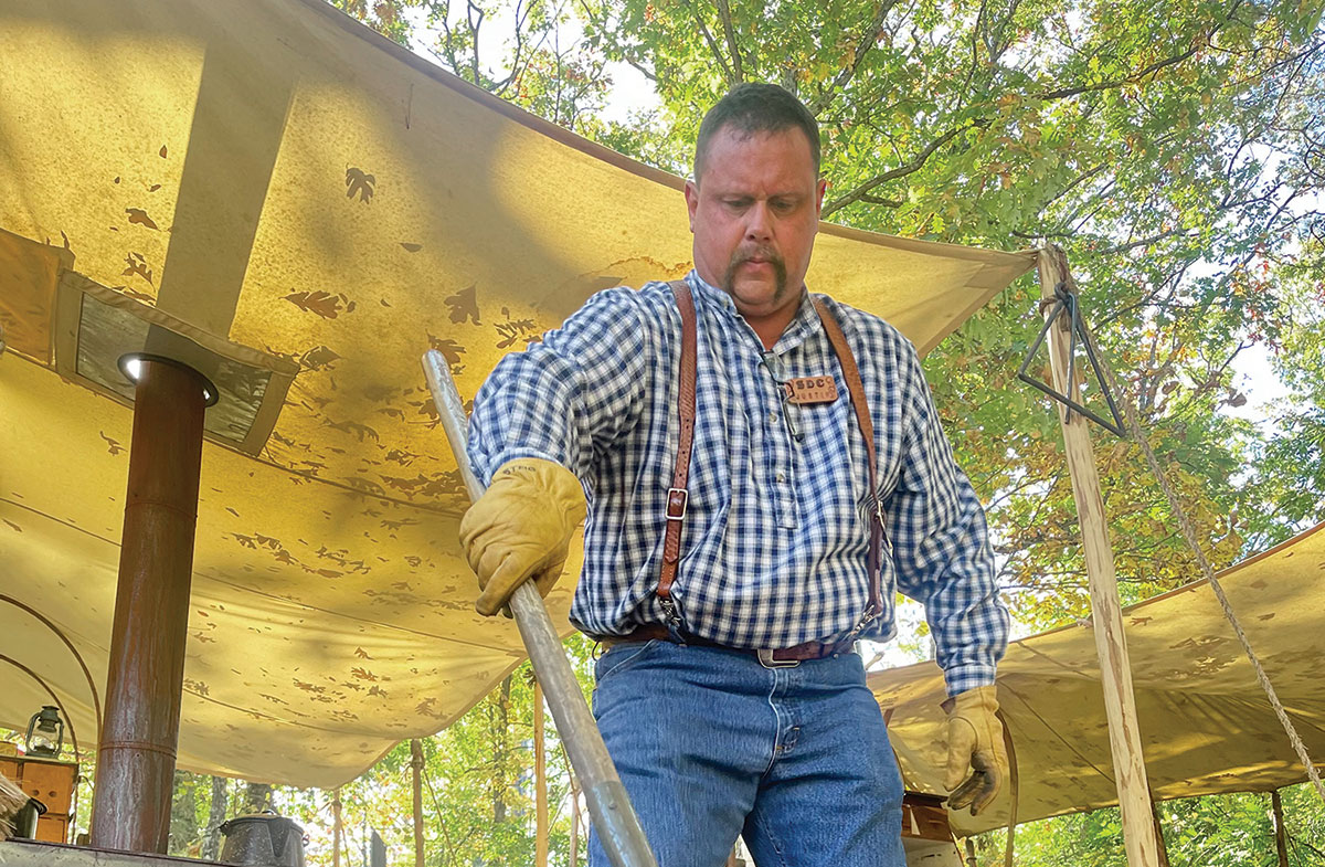 “I love the cooking, and I love the history of the chuckwagons,” Justin said. “I don’t geek out on the wagons, but I enjoy them. I’m very much into Dutch oven cooking; I think it’s a lost art. I love entertaining and educating folks, and I love cooking off the wagon; things just taste better.”