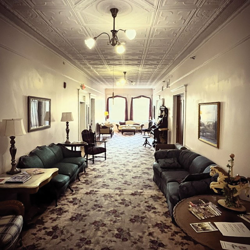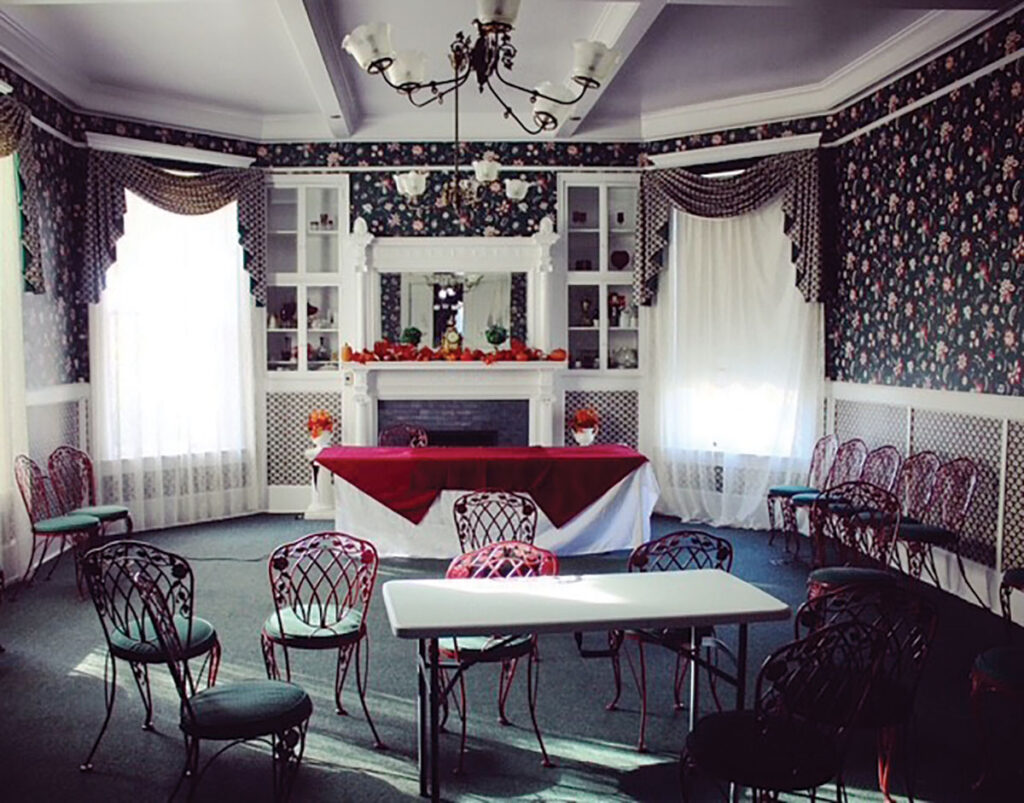 After managing the mansion for nearly half a century, Skiles was enthusiastic to share several heartwarming stories of guest history. She is used to the typical squeaks and creaks of an old building, especially in the tunnel that joins the mansion to the church. Though she assured me that the only spirit that currently resides at The Elfindale is The Holy Spirit. “I love meeting the people that visit Elfindale.” says Skiles. She spoke of a folklore group with members from all over Missouri that stayed recently, renting three of the meeting rooms along with six lodging suites, making for a full house. She enjoyed hearing them sing old hymns and harmonize within the old walls of the quaint mansion. She talked of the many Christmas parties hosted at Elfindale over the years, as well as princess tea parties, retirement get-togethers, and family reunions. The management loves to host holiday parties and works with caterers to make the events festive and enjoyable, though alcohol is not allowed for private parties.