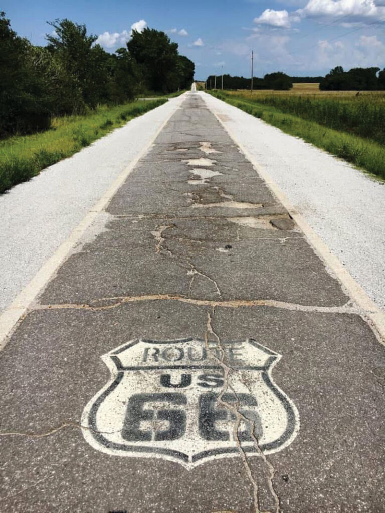 Route 66 across Missouri features a variety of large cites and small towns, connected by rolling hills and valley. The Mother Road follows much of the Kickapoo, or Osage Trail, which later became known as the Old Wire Road. I-44 eventually replaced Route 66 and overpaving was common in some sections.
